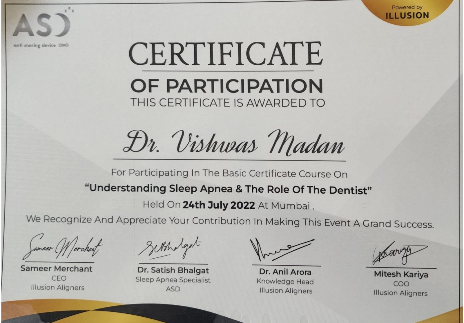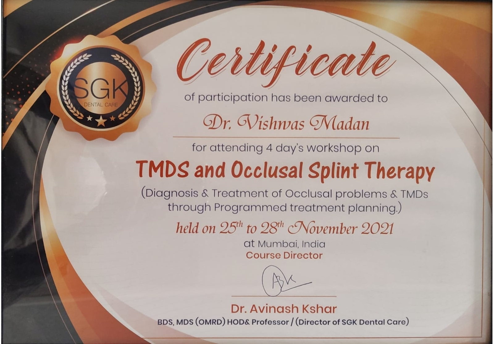 Completed advanced training focused on understanding, diagnosing, and managing TMJ disorders under the guidance of Mr. Chris Barrow.